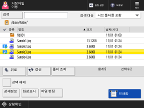 이 화면을 사용하여 인쇄할 파일을 선택합니다.