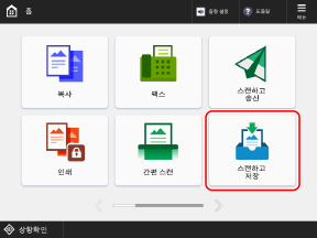 * [홈] 화면의 [복사], [스캔하고 송신] 또는 [저장파일 이용]에서 문서를 스캔하고 데이터를 메일함에 저장할 수도 있습니다.