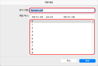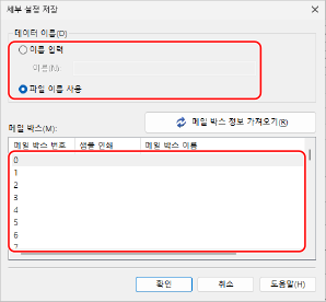 저장 시 파일명과 저장 위치로 사용할 메일함을 지정합니다.