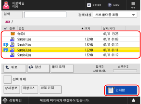 인쇄할 파일을 선택하고 [인쇄함]을 누릅니다.