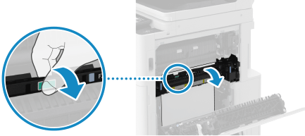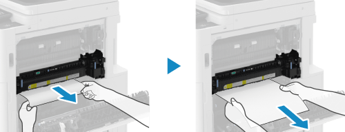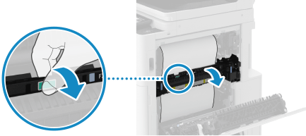 반전 장치 안쪽에 용지가 걸린 경우 화살표 방향으로 부드럽게 당겨 빼냅니다.