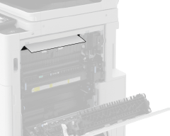 본체의 오른쪽 커버 내부에 있는 배지 영역에서 용지가 걸린 경우 화살표 방향으로 부드럽게 당겨 빼냅니다.