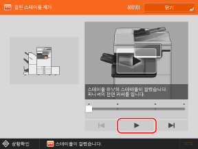 * 걸린 용지나 스테이플을 제거하기 전까지 이 화면이 반복해서 표시됩니다. [닫기]를 눌러 화면을 잠시 닫고 다른 작업이나 설정을 수행할 수 있습니다.