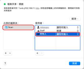 對於 [共享的檔案夾],選擇建立的資料夾。