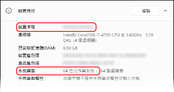 對於 64 位元作業系統,會顯示 [64 位元作業系統]。