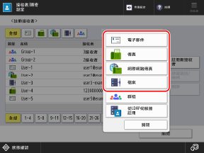 在掃描(掃描後傳送)或傳真畫面上,您可以按下 [通訊錄] 從通訊錄畫面註冊目的地。