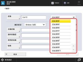 如果您從掃描或傳真畫面註冊目的地,則不需要此步驟。繼續執行步驟 3