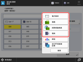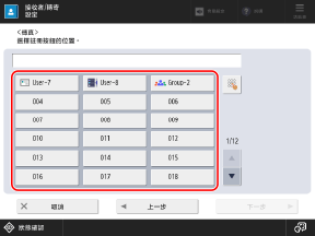 您也可以從掃描(掃描後傳送)或傳真畫面將目的地註冊到單鍵按鈕。