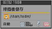 顯示目的地的資料夾名稱、原稿尺寸、解析度、雙面和檔案格式設定。