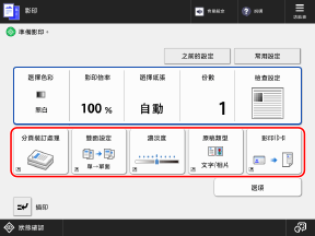 如果您經常對多個功能使用相同的設定或值,您可以將這些註冊為「常用設定」,以便從功能畫面存取這些,並變更預設設定。