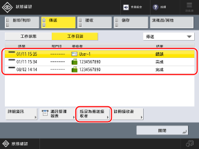 * 如果傳送日誌受限制,只有登入使用者才能存取日誌中自己的工作,請先登入本機,再從登入使用者的傳送日誌中叫用並指定目的地。
