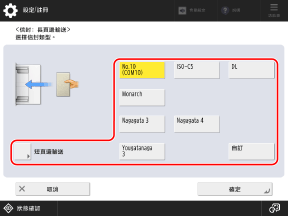 根據信封的方向,按下 [長頁邊輸送] 或 [短頁邊輸送],然後選擇信封的尺寸。