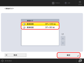選擇已裝入長條紙張的尺寸,然後按下 [確定]。