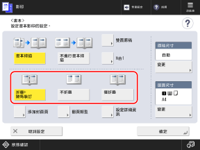 按下 [調整騎馬裝訂摺疊位置/裝訂位置]