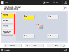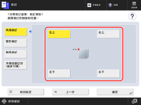選擇分頁裝訂處理圖案。如需詳細資訊,請參閱按下畫面右上角的 [
