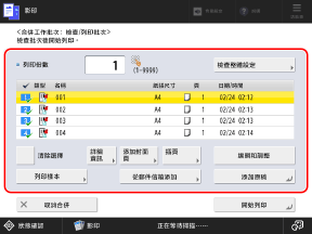 顯示 [合併工作批次:檢查/列印批次] 畫面。