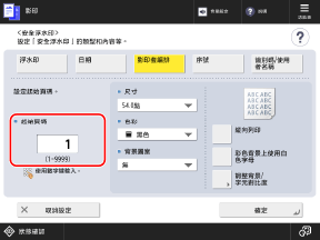 您可以嵌入影印套編號 (用於指示影印套的順序)。這些編號可用作每個影印套的控制編號。