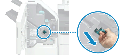 握住裝訂針盒上的綠色旋鈕並筆直拉出。