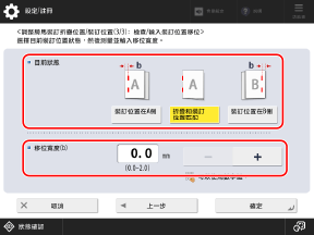選擇裝訂位置的目前狀態,並設定偏移寬度。