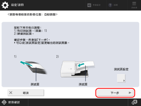 請遵循畫面上的指示將測試頁裝入送稿機中。