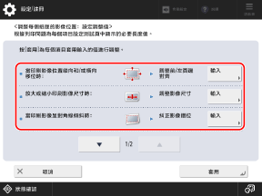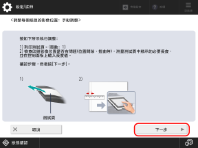 按下 [測試頁設定],選擇放置掃描測試頁的位置,並設定要輸出的張數,然後按下 [確定]
