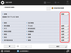 您可以按下每個項目的 [變更] 變更紙張類型資訊。