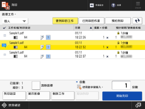 [要列印的工作]、[已列印的作業] 和 [預約列印]