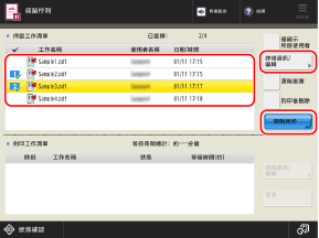 選擇要列印樣本的文件,然後按 [詳細資訊/編輯]