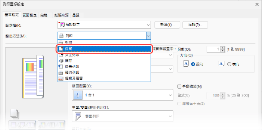 您可以在驅動程式的列印設定中設定「保留」功能,並將要保留的文件傳送至本機。