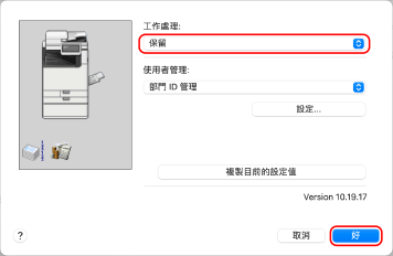 在 [工作處理] 選擇 [保留],然後再按一下 [好]。