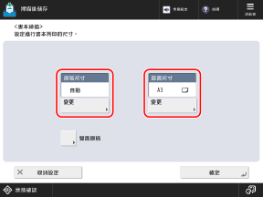 按 [原稿尺寸] 下方的 [變更],選擇原稿尺寸,然後按 [確定]。