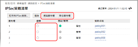顯示 [IPSec策略清單] 畫面。