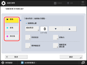 這些字元格式設定僅套用於樣本列印以調整對比度。這些設定不會套用於實際列印或影印文件時嵌入的浮水印。