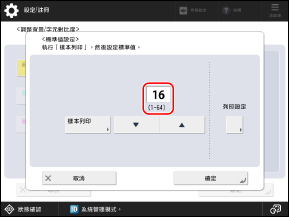 樣本隨即列印,而且 [標準值設定] 畫面再次顯示。