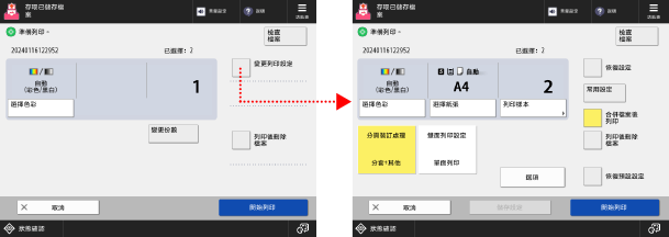 按下畫面右上方的 [變更列印設定] 可進行下列設定: