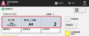 目前設定的列印色彩、要使用的紙張以及列印份數顯示在畫面中央。檢查這些設定以確保正確列印。