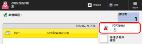 在郵件信箱的檔案選擇畫面上,選擇檔案並按下 [傳送] 顯示傳送設定畫面。