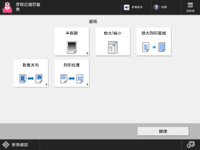 按下此畫面上的按鈕可設定詳細的列印設定。進行列印設定後,按下 [關閉] 返回列印設定畫面。