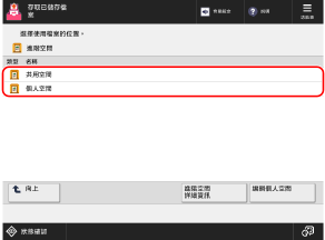 [首頁] 畫面選擇儲存空間的畫面隨即顯示。