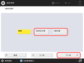 設定進階郵件信箱對外公開的設定,然後按下 [下一步]。