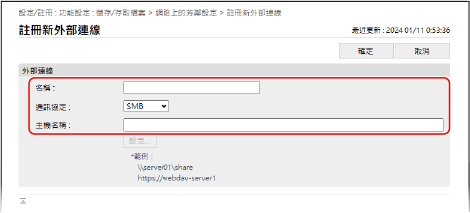若要直接存取和使用網路上其他機器的進階郵件信箱或檔案伺服器(Windows 伺服器),必須將用於存取的資訊註冊為連線目的地。
