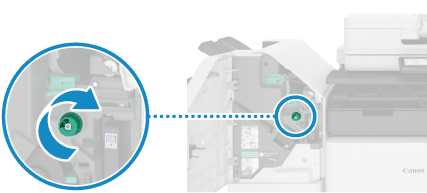 如果轉動旋鈕的次數不夠,拉出騎馬裝訂單元時,卡紙可能會撕裂。