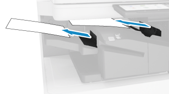 如果內部裝訂分頁機的輸出紙盤卡紙,請朝箭頭方向輕輕地拉出。