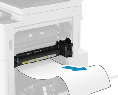 如果輸出區域中出現卡紙,請朝箭頭方向輕輕拉出。