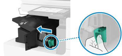 握住綠色拉桿並將內部裝訂分頁機滑至左側。