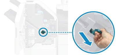 握住裝訂針盒上的綠色旋鈕,並且筆直拉出。