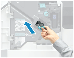 將裝訂針盒安裝到裝訂分頁機中。