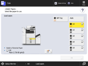 選擇已裝入顯示的紙張的紙張來源,並且按下 [確定]。