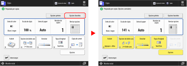 Quan utilitzeu les funcions de lectura i còpia, entre d'altres, recupereu l'opció segons la vostra finalitat entre les que heu desat a "Opcions favorites".
