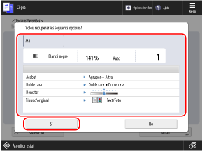 Comproveu la configuració i feu clic a [Sí].